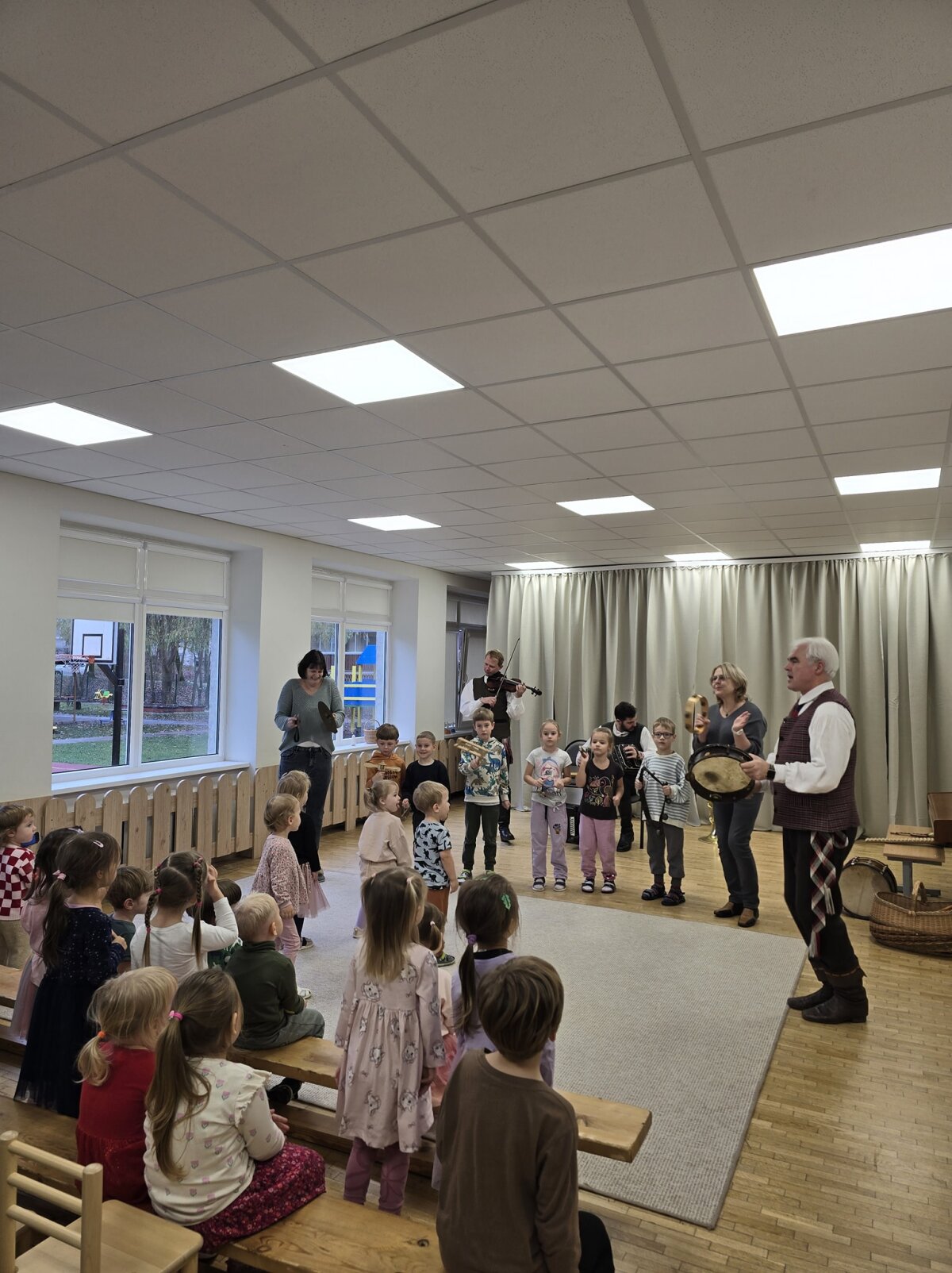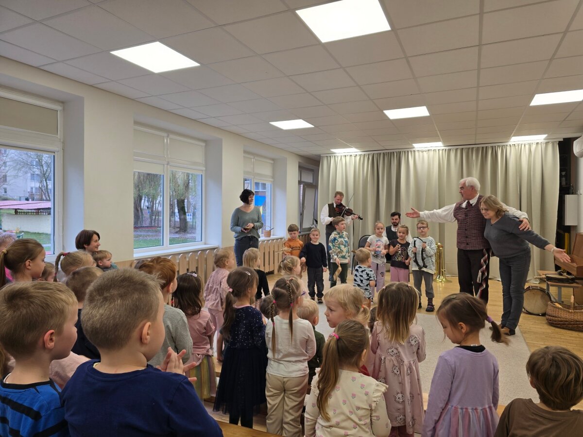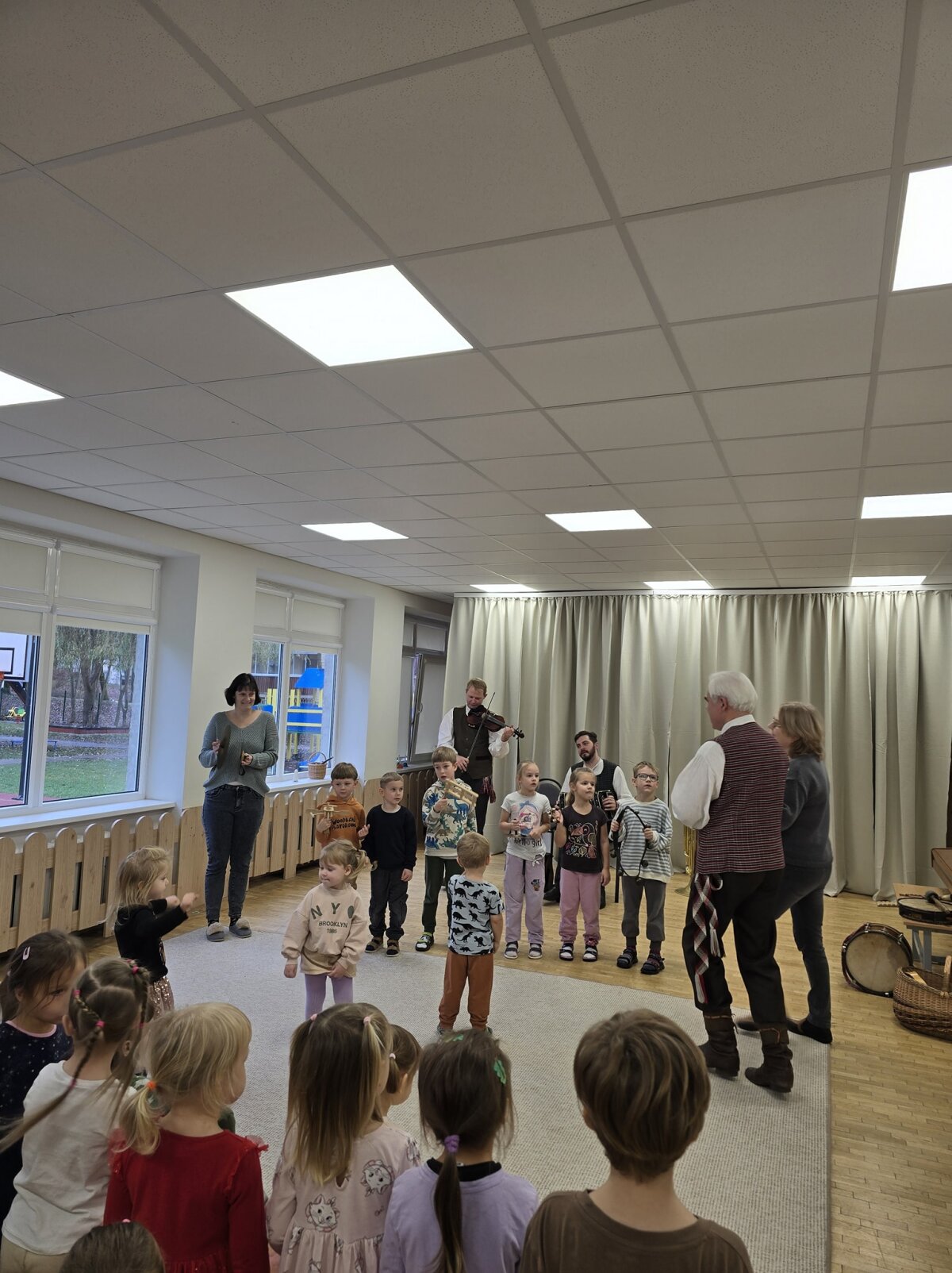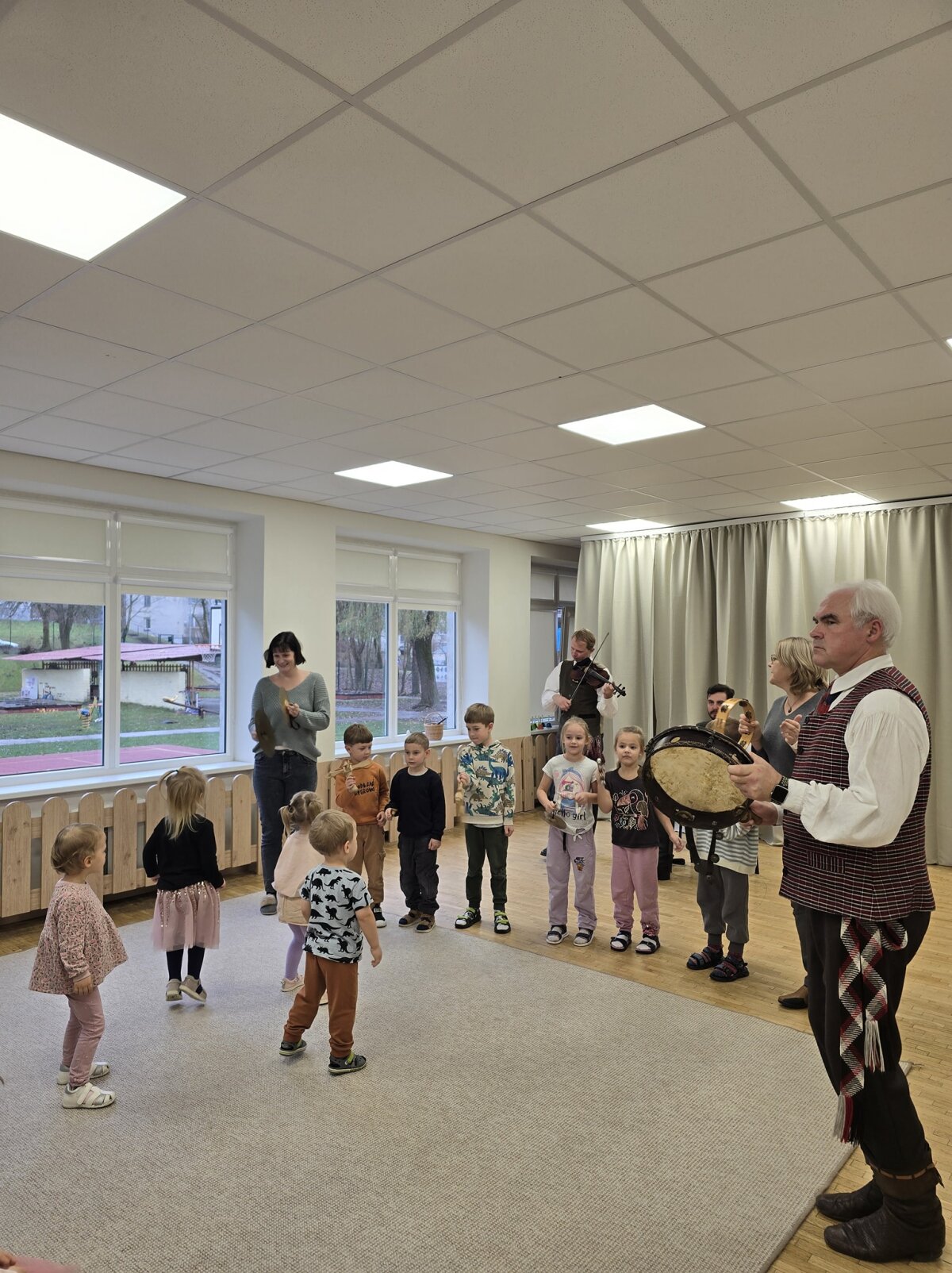 Šiandiena mūsų darželyje svečiavosi instrumentinio folkloro grupė, kuri atvežė vaikams ETNO ŽAIDIMĄ - smagų ir linksmą edukacinį koncertą. Ansamblio repertuare - įvairiausių laikų lietuvių instrumentinė muzika vaikams, kuri buvo atliekama autentiškais instrumentais. Be visame pasaulyje populiarių, Lietuvoje taip paplitusių smuikų, bandonijų, armonikų, kolektyvas vaikučius džiugino ir supažindino su visais lietuviškais instrumentais - lamzdeliais, rageliais, skudučiais, ragais, daudytėmis, ožragiais, kanklėmis ir kt. Ansamblis ne tik grojo, dainavo, bet ir šoko kartu su vaikais, džiugino smagiais pasakojimais ir pokštais, įtraukė vaikus į bendrą muzikavimą ir smagų pasibuvimą kartu.