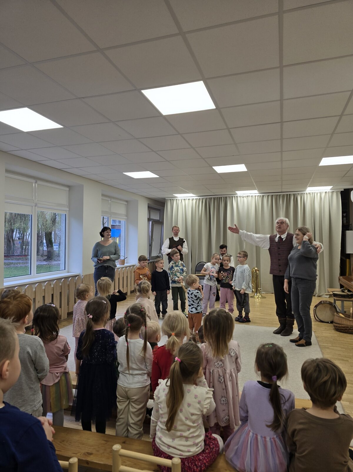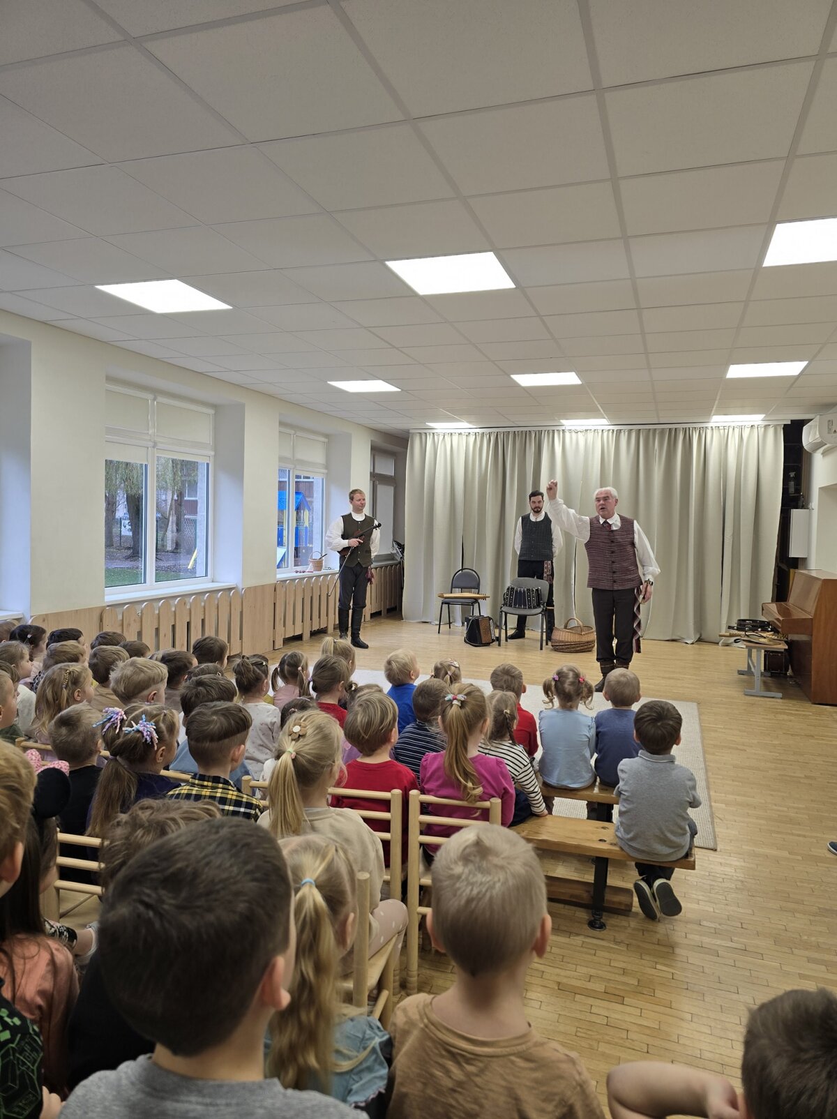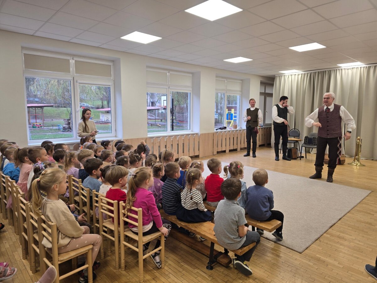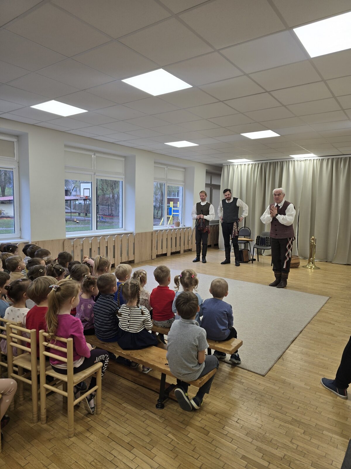 Šiandiena mūsų darželyje svečiavosi instrumentinio folkloro grupė, kuri atvežė vaikams ETNO ŽAIDIMĄ - smagų ir linksmą edukacinį koncertą. Ansamblio repertuare - įvairiausių laikų lietuvių instrumentinė muzika vaikams, kuri buvo atliekama autentiškais instrumentais. Be visame pasaulyje populiarių, Lietuvoje taip paplitusių smuikų, bandonijų, armonikų, kolektyvas vaikučius džiugino ir supažindino su visais lietuviškais instrumentais - lamzdeliais, rageliais, skudučiais, ragais, daudytėmis, ožragiais, kanklėmis ir kt. Ansamblis ne tik grojo, dainavo, bet ir šoko kartu su vaikais, džiugino smagiais pasakojimais ir pokštais, įtraukė vaikus į bendrą muzikavimą ir smagų pasibuvimą kartu.