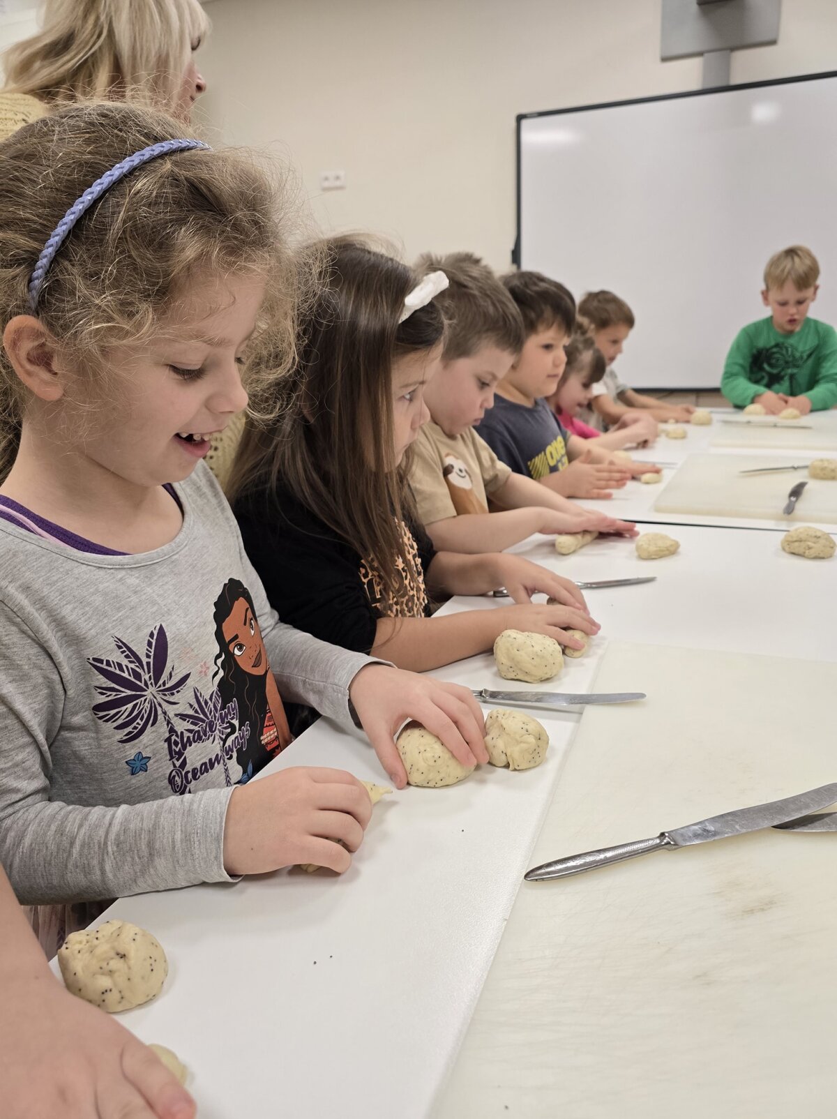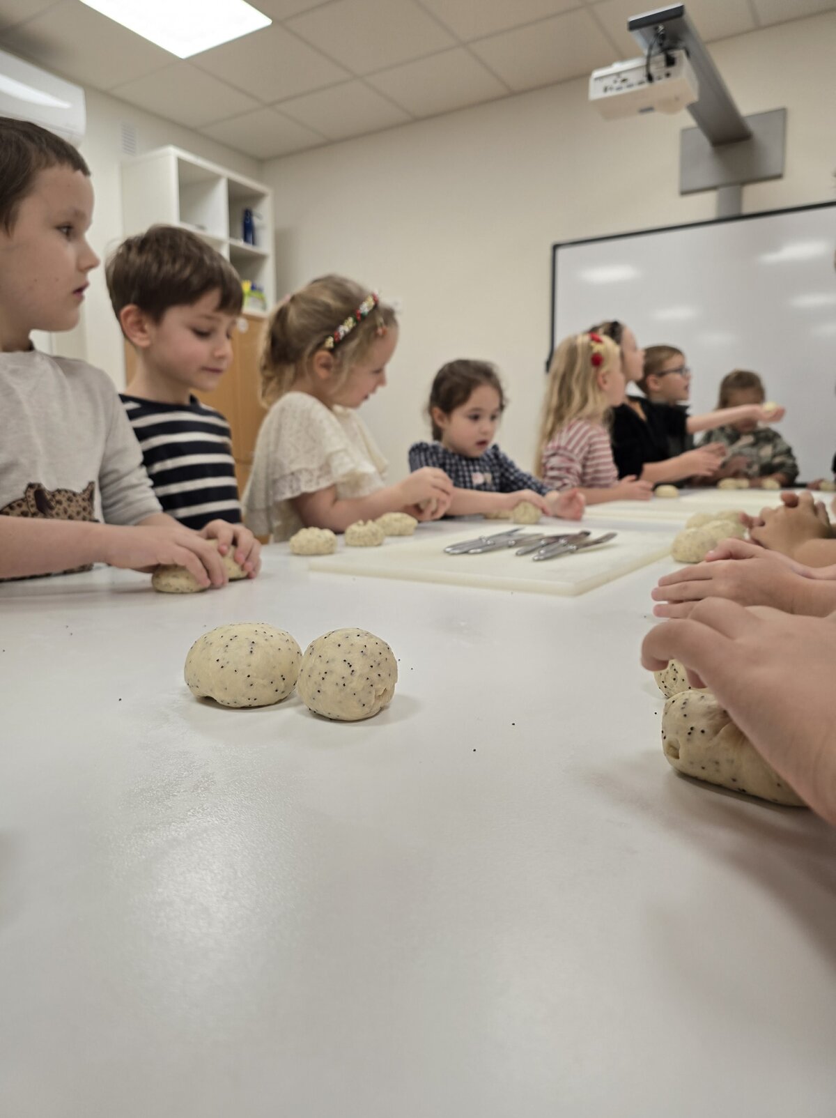 Šiandiena mūsų darželis pakvipo tikromis Kalėdomis. „Pelėdžiukų", „Kodėlčiukų", „Žiogelių" ir „Katinėlių" grupės kepė kūčiukus. Ši edukacija yra nuostabus potyris vaikams pažinti kūčiuką, ar kitaip vadinamą kleckučiais, prėskučiais, galkutėmis, kalėdukais, buldikais, pulkeliais, kukuliais, paršeliukais, šližikais.